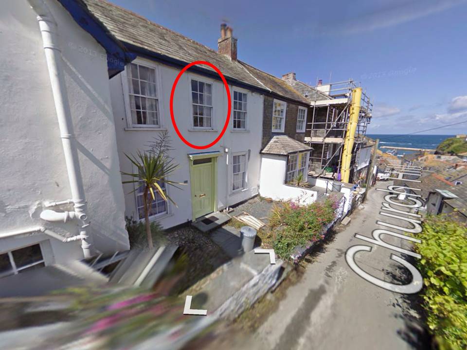 | One evening this episode, the camera pans along cottages on Church Hill and we see first one and then a second window lit up. We then are inside Morwenna's bedroom. She is having a sleepless night mourning her grandfather. |