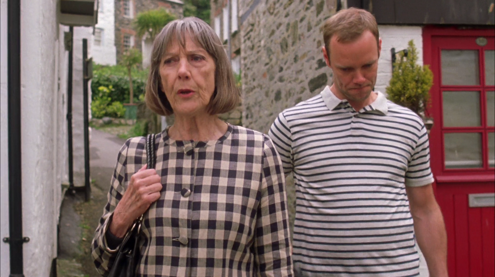| When Louisa is walking home from work and shopping, a villager confuses her by asking after the doc and saying he must be used to it. Louisa, at that point, had not heard about Martin being sick after tending to Penhale. |