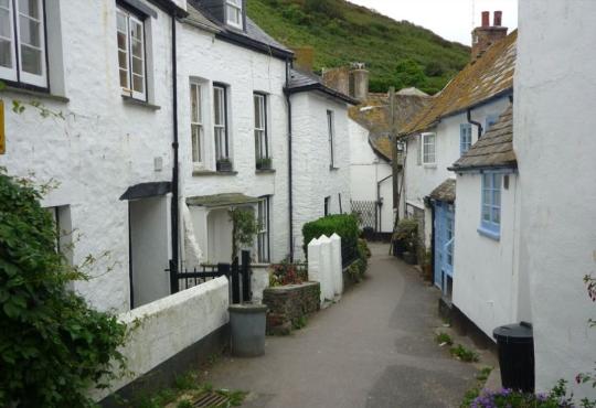 | They used a cottage called Cliff Cottage. It's located at the top of Fore Street and is highly visible as you come up Fore Street with the stone facade and two gothic windows. It is also next to the walkway down to the cottage where Louisa lived during her pregnancy in Series 4. The cottage has a garden going down to the edge of the cliff, and as you can see in the pictures below, it's aptly named. |