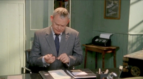 | The only change is that Dr Dibbs has brought in a new wooden chair. Martin keeps the chair and it remains there through S5 & S6. The chrome desk lamp was seen here during S5. |