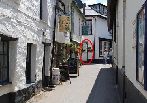| The entrance to the local pub (Crab & Lobster) is usually through the door to the left of The Mote (red circle below). Most of the time, The Golden Lion Pub in Port Isaac (located behind The Mote) is used as the interior (however, in series 2 and 4, they shot most of the interiors in other pubs). For Series 3 they shot all of the interiors at The Golden Lion Pub |