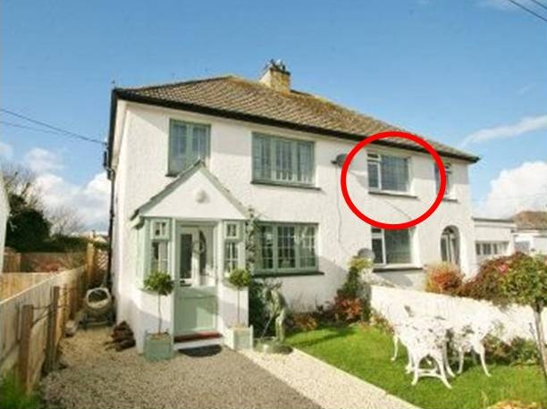 | These are the two windows that we see lit up. Local artist, Lizzie Lovegood wrote about the crew setting up the light in her bedroom for this shot - the one on the left. Check it out on her website: www.lizzielovegood.com/diary/page/9/ |
