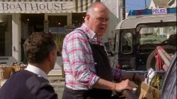 | The morning after the disastrous dinner party, Louisa goes to Dennis' house to clear the air. Karen tells her that he is at the building site across the street. |