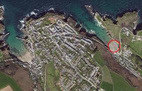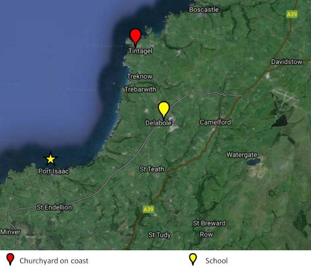 | The church with the surrounding cemetery is Forrabury Church in Boscastle. |