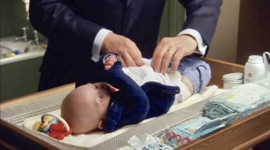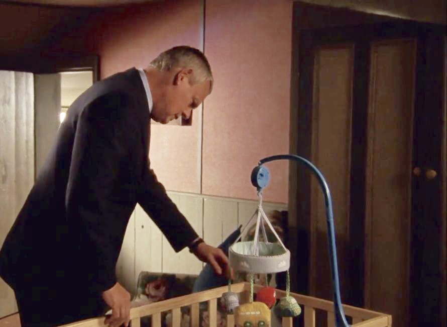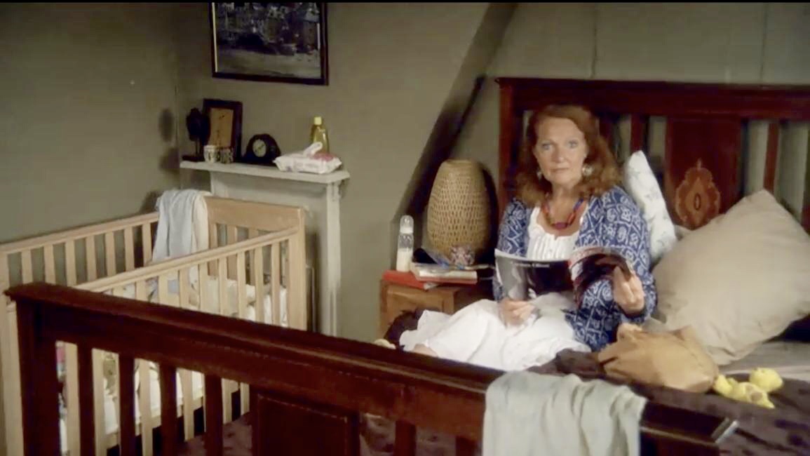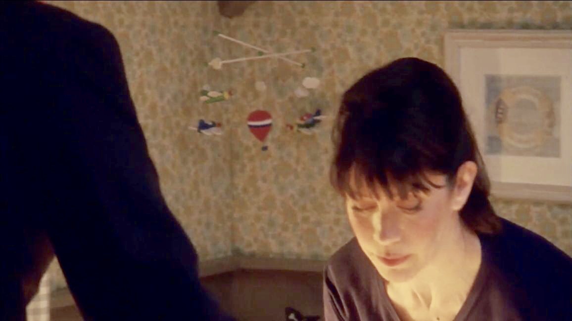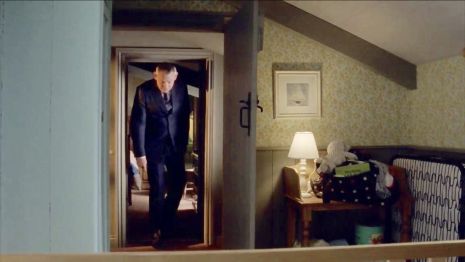 | Not very good views of the corner and the wall, but the small clock and the black Buddha head are still on the mantel. The new painting above the fireplace looks like it might be the one that was over in the opposite corner behind the door last series. The freestanding full length mirror is moved over to this corner in a couple of scenes, but there is really not much else there. James Henry's crib in there at the beginning and end of the series, but is moved closer to the wardrobe. |