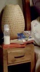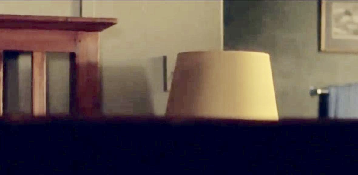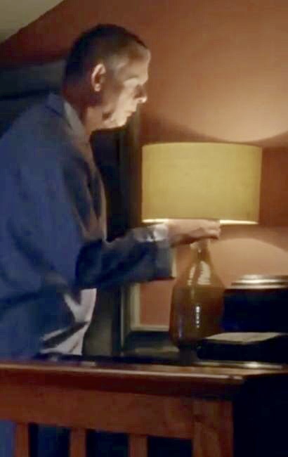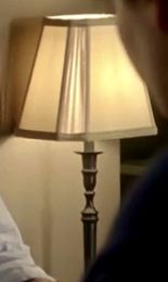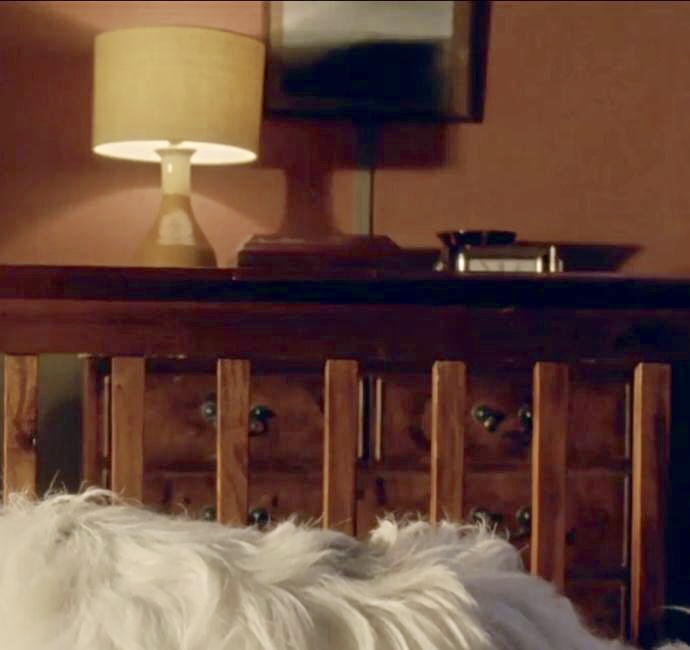 | Martin's nightstand is the same as in S7, but the lamp with the red & white shade is gone. The lamp that he had there in S6 is back, but with a tan colored shade. Of course, his travel alarm is still there. We have no camera angles showing Louisa's nightstand, but there is one shot that picks up part of the shade on her lamp - and it matches the shade on a lamp that sat in the Waiting Room in S7. |