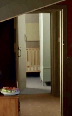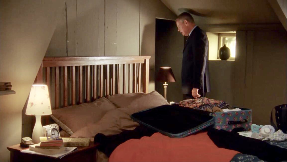 | There were only a couple of shots though the door this series. The only visible change is that the large wardrobe against the right wall is gone. |