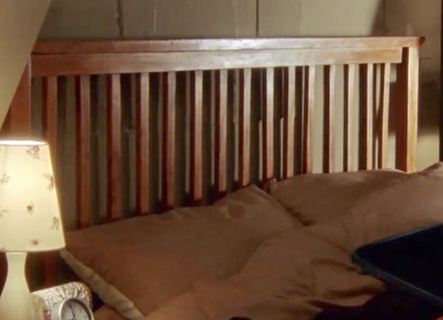 | On the left is a screenshot from S2. On the right is a photo from the set that I believe was a corner of that room constructed for S2. Notice that the bedside table matches the one from the screenshot - and the finish on the bed also seem to match. |