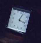 | There have been some changes in this room. James Henry's crib is now against the back wall. On the right wall is a new, large light blue wooden wardrobe. Behind the door, the white dresser is gone, replaced by a short wooden shelving unit. Another framed picture, matching the two above the crib, hangs above. The roll away cot used by Martin's mother sits in the corner. When Martin moves into the room they move the crib to the larger bedroom and install the cot. A wooden chair and small side table (which we've never seen before) are brought in. It appears that Martin has brought in the lamp from his nightstand - although the red & white striped shade seems to appear pink when lit. He also has his little travel alarm. |