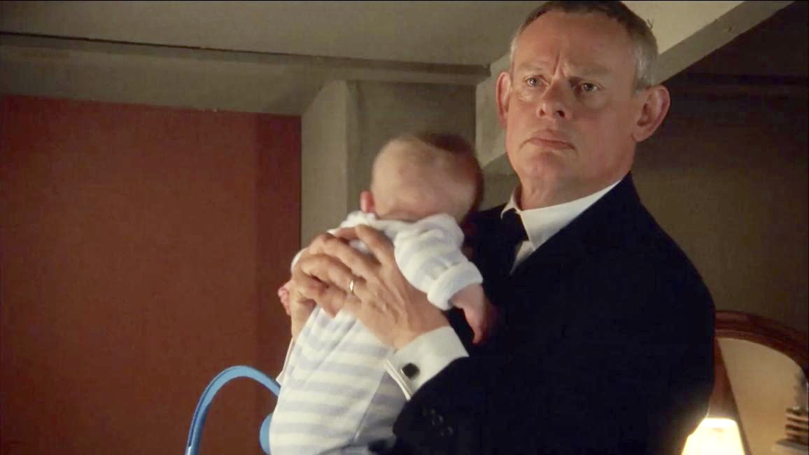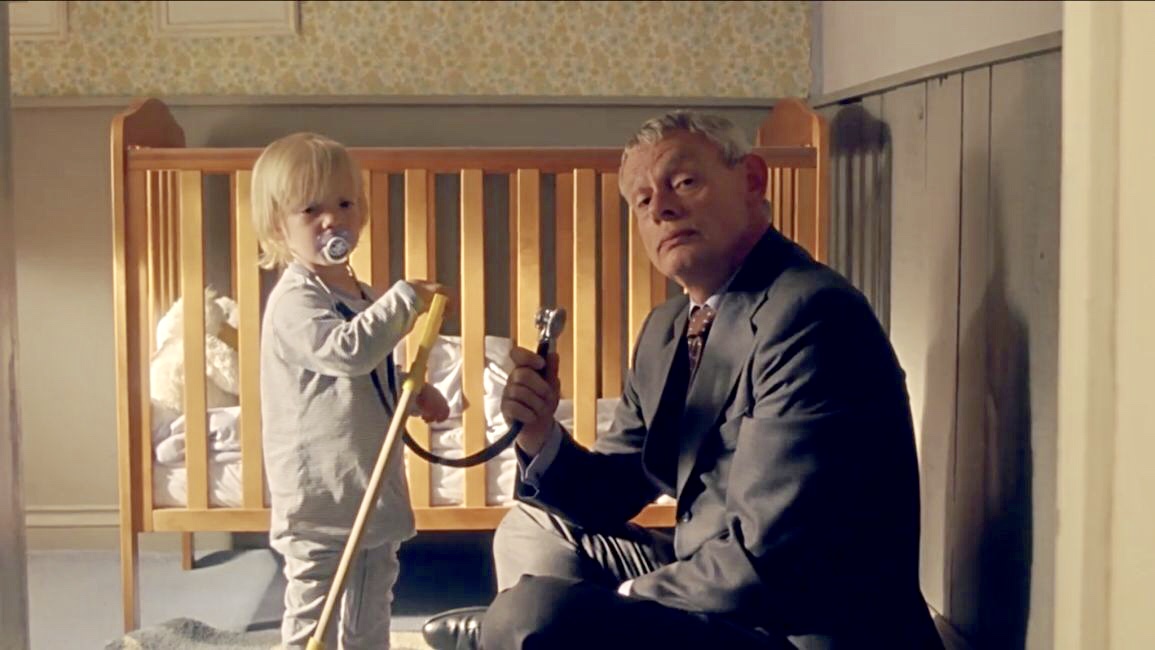 | James started sleeping in a crib in Martin & Louisa's bedroom, but moved into his own room across the hall in Series 6. This room was also used as a guest bedroom for Martin's mother in S6 and for Martin in S7 before he moved out of the Surgery. In one scene, we got a glimpse of the window and it has similar stained glass to the one in Martin & Louisa's room. |