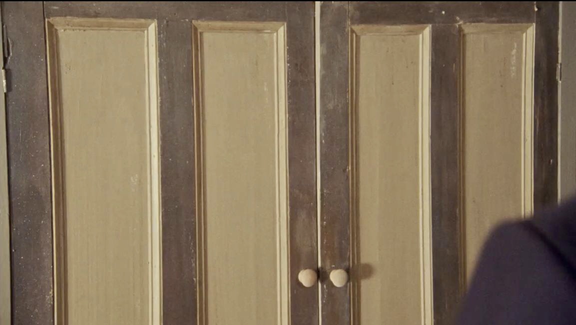 | Another clue that this is the same piece used in all three places is the broken piece of wood just above the door hinge. You can see the same flaw in the wood in the unseen wardrobe from S2 (right), the bedroom used for S3 (below left), and the bedroom built on the set for S5 + (below right). |