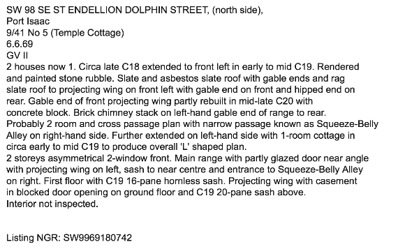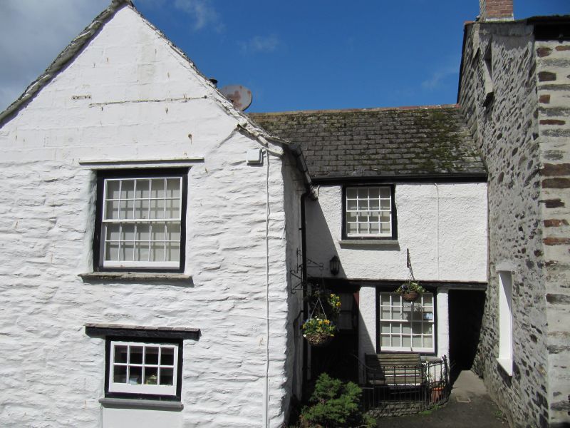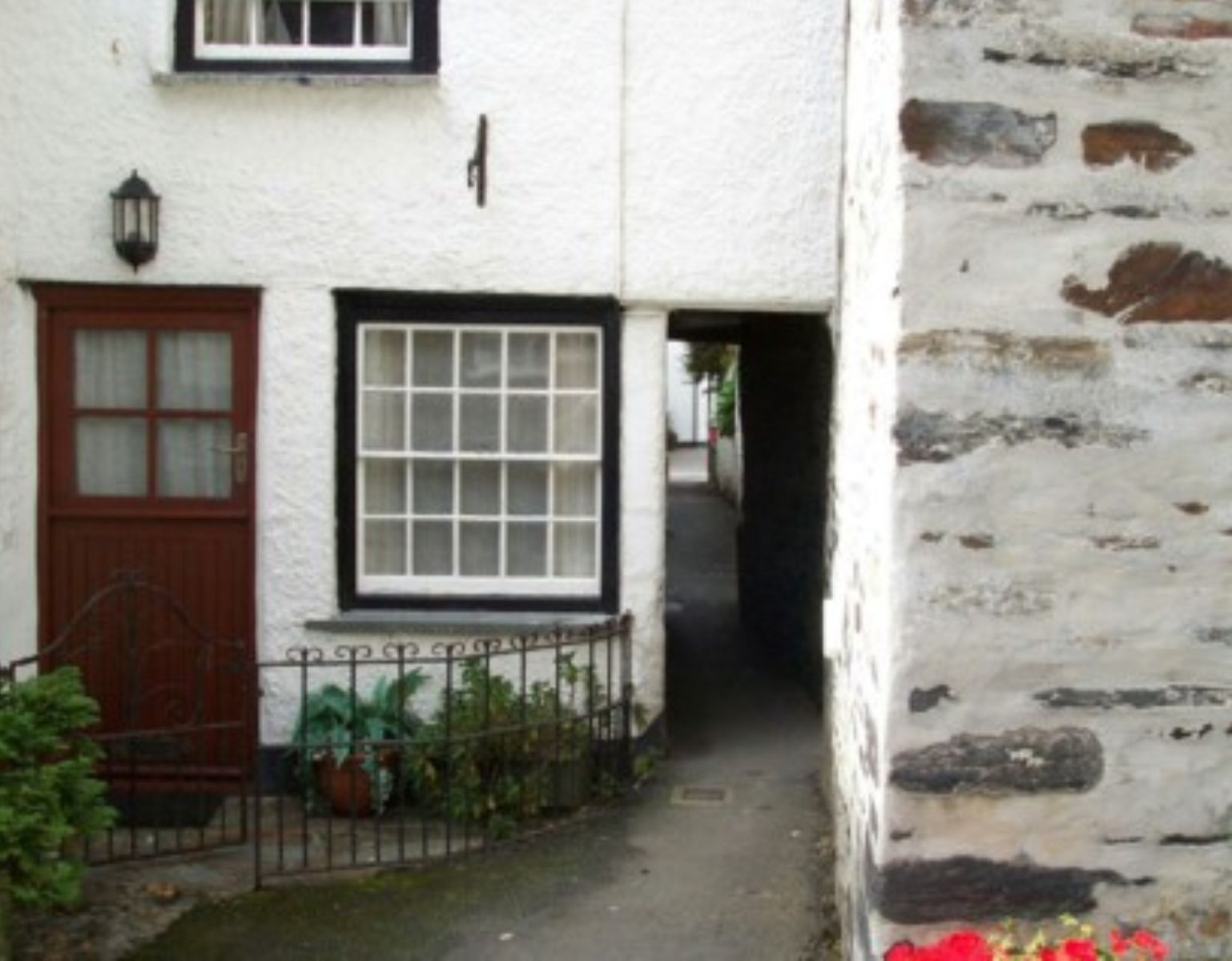 | Temple Cottage is a holiday let. It sits right at the opening of "Squeeze Belly Alley", a narrow alley that connects Fore Street to Dolphin Street. |