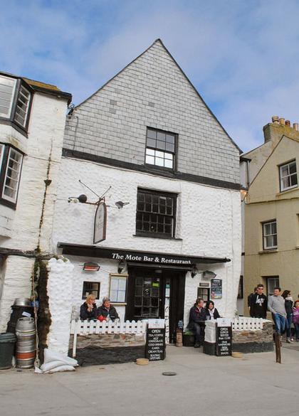 | Many scenes in the show have taken place just outside The Mote, but two notable ones were filmed inside. The first was the opening scene to Series 1, Episode 6 when Martin is staring at the mole on a sunbather just outside the doors to the restaurant. The camera angle switches to Louisa sitting at the bar reading a newspaper, but interestingly, Louisa is sitting in the bar at The Golden Lion, the building behind this one and two floors up. Martin walks to the doorway of The Mote and carries on a short conversation with Louisa. Martin's shots were filmed from inside The Mote and Louisa's were filmed inside The Golden Lion. In the Christmas Special after Series 2, the meeting that Gavin Peters calls to discuss Martin's patient care takes place upstairs in The Mote. You can see the Pasty Eating Contest on the Platt from the large window in that area of the restaurant. |