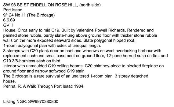 | The Birdcage is a holiday let. It's one of the more well known buildings in the village due to it's odd shape. |