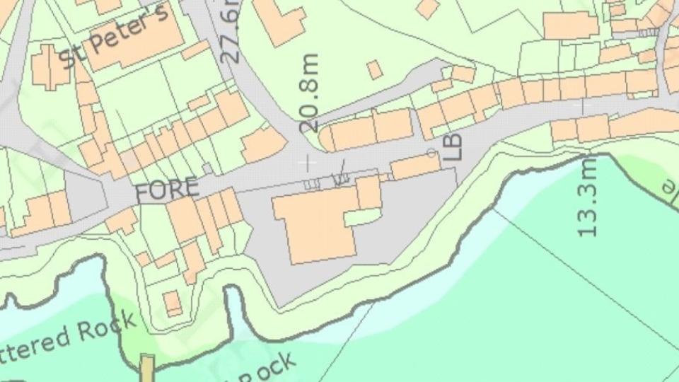 | Google Street View can be used to explore Fore Street Click on addresses to see building details |