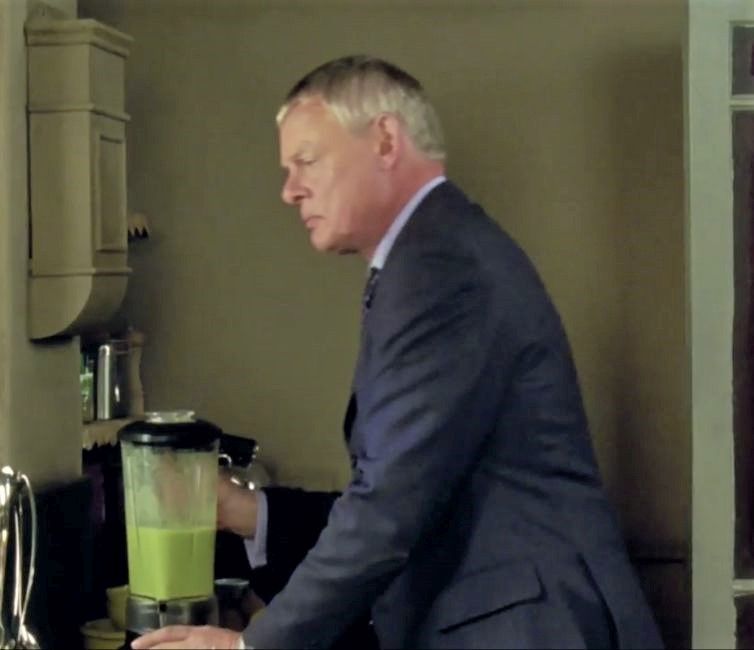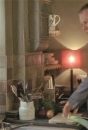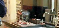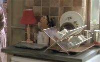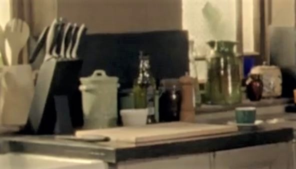 | The lower cabinet on the left has been removed and a white dishwasher is now under the counter - for Episode 1. In Episode 2, part of the storyline is the new dishwasher that Martin installs, so there is a new silver one there for the rest of the series. On the left counter, despite the fact that there is now a dishwasher below, the chrome dish drying rack remains. On the end of the counter are the round bamboo steamers and a few condiments - tabasco, soy sauce, and maybe vinegar or oil. The chrome rack with cleaning utensils is now on the right side, on the left side is a white pitcher holding cooking utensils, the framed stained glass is now in the middle - leaning against the window, and some tall cruets are on either side. A tiny item was seen on the window crossbar all through S2, but we finally got a better look at it in this series - it looks like maybe a metal snail? On the middle counter is a silver espresso machine, a black & silver tall coffee grinder, 2 silver coffee canisters, and a black electric kettle. On the wall above is a framed beach scene (it was in the Back Left Corner of the Living Room in S2) and below is a sepia print that is mostly hiding behind the espesso machine. Starting in Episode 4, the lower picture is taken from the wall and put on the right counter, leaning against the wall. On the windowsill above the stove are an assortment of bottles and other items, including a triangular cheese grater. On the right side sits one of the Small Buddhas. But, halfway through Episode 1 it moves to the Consulting Room - and then returns to this windowsill in Episode 3 and remains there for the rest of the series. The little red timer is just to the right of the stove. The right counter holds several different items including the knife block and a tall lamp. This lamp is identical to one in the Consulting Room this series - but with a different shade. The picture that was on the wall to the left was moved here in Episode 4 and it's part of a set of 3. The other two moved around on the side wall and starting in Episode 5, one of them moved to the counter to lean against the side wall. |