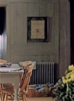| The sampler remains on this wall in S9 and Buddy's basket has become a fixture in front of the radiator. |